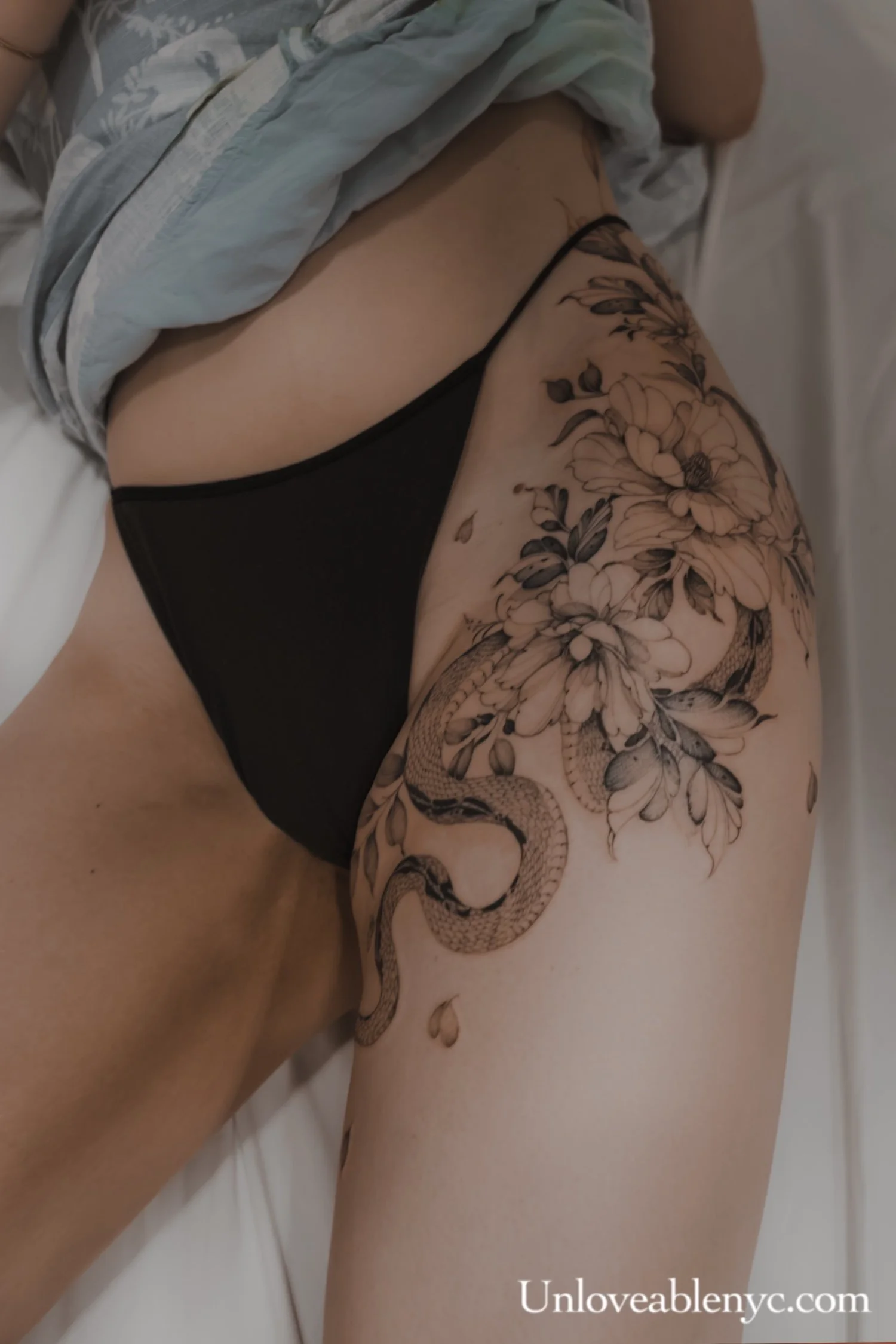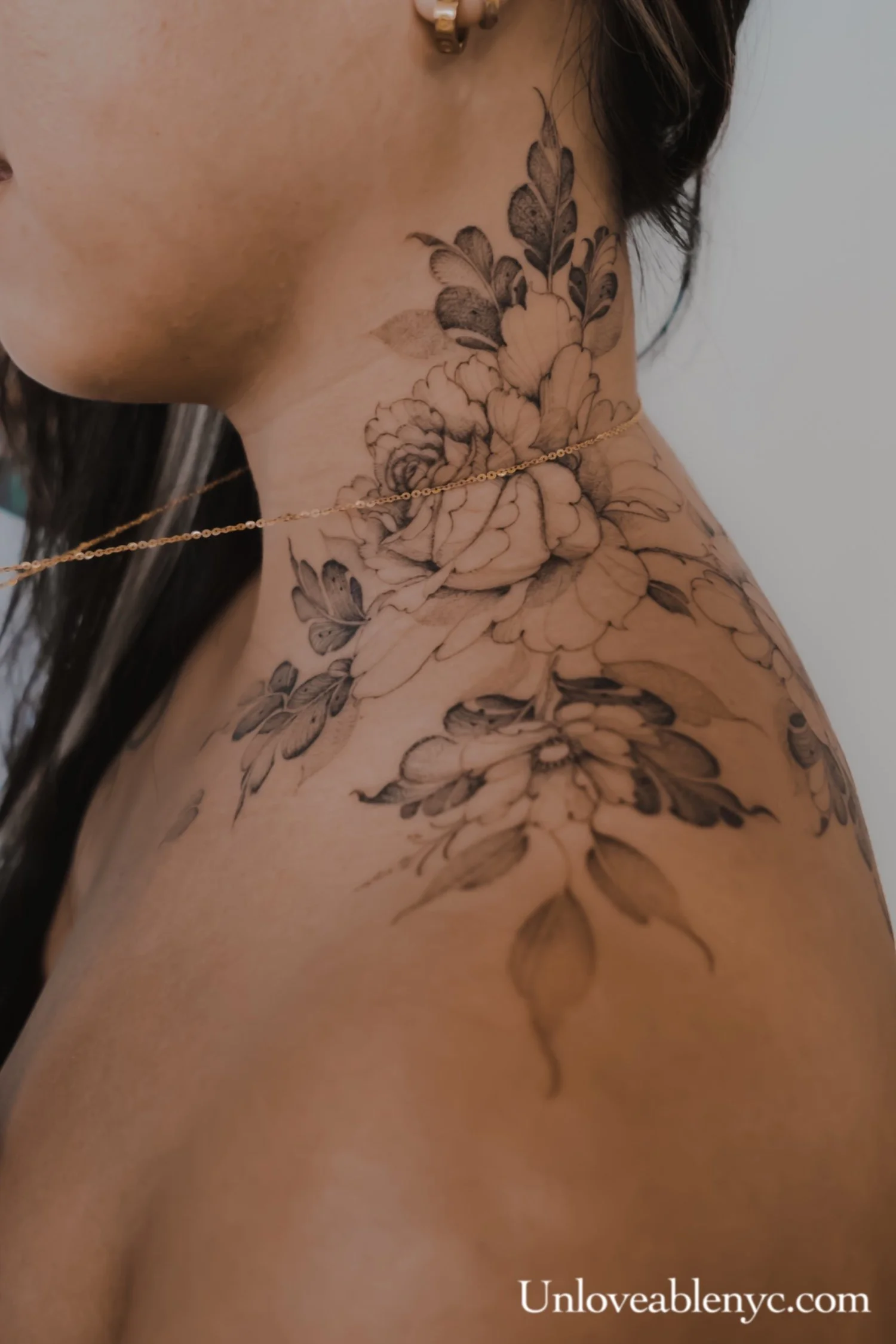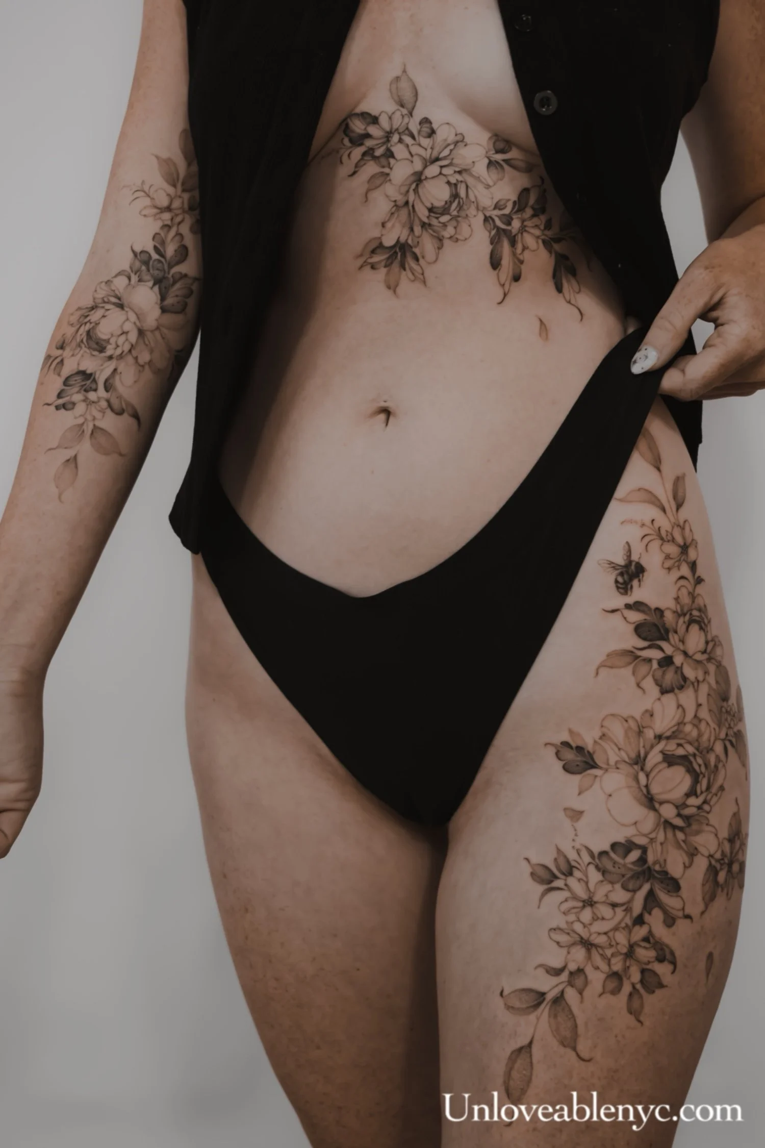 Here, you’ll find a captivating and inspiring gallery of beautifully intricate tattoos that I have crafted. Each softly detailed floral tattoo captures the timeless elegance of delicate blossoms gently adorning the body with grace and femininity. My floral tattoos are the perfect choice for those who appreciate the harmonious blend of natural beauty and body expression. Every design gracefully flows naturally with your form, capturing a sense of eternal softness, graceful femininity, and refined beauty.